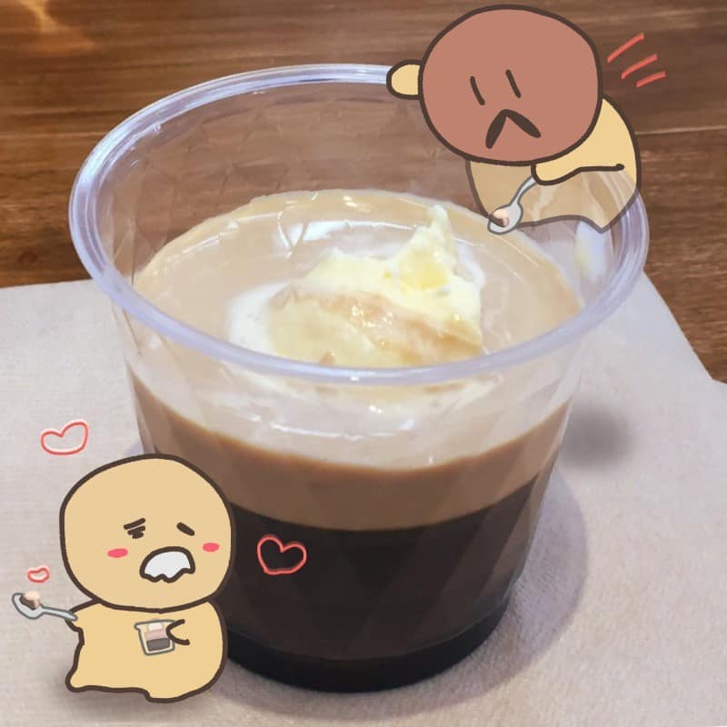 [speech_bubble type=”std” subtype=”L1″ icon=”3.jpg” name=”こひげさん”] 「コーヒーゼリー」の うえに 「ミルクコーヒー」が あるぞー![/speech_bubble]
