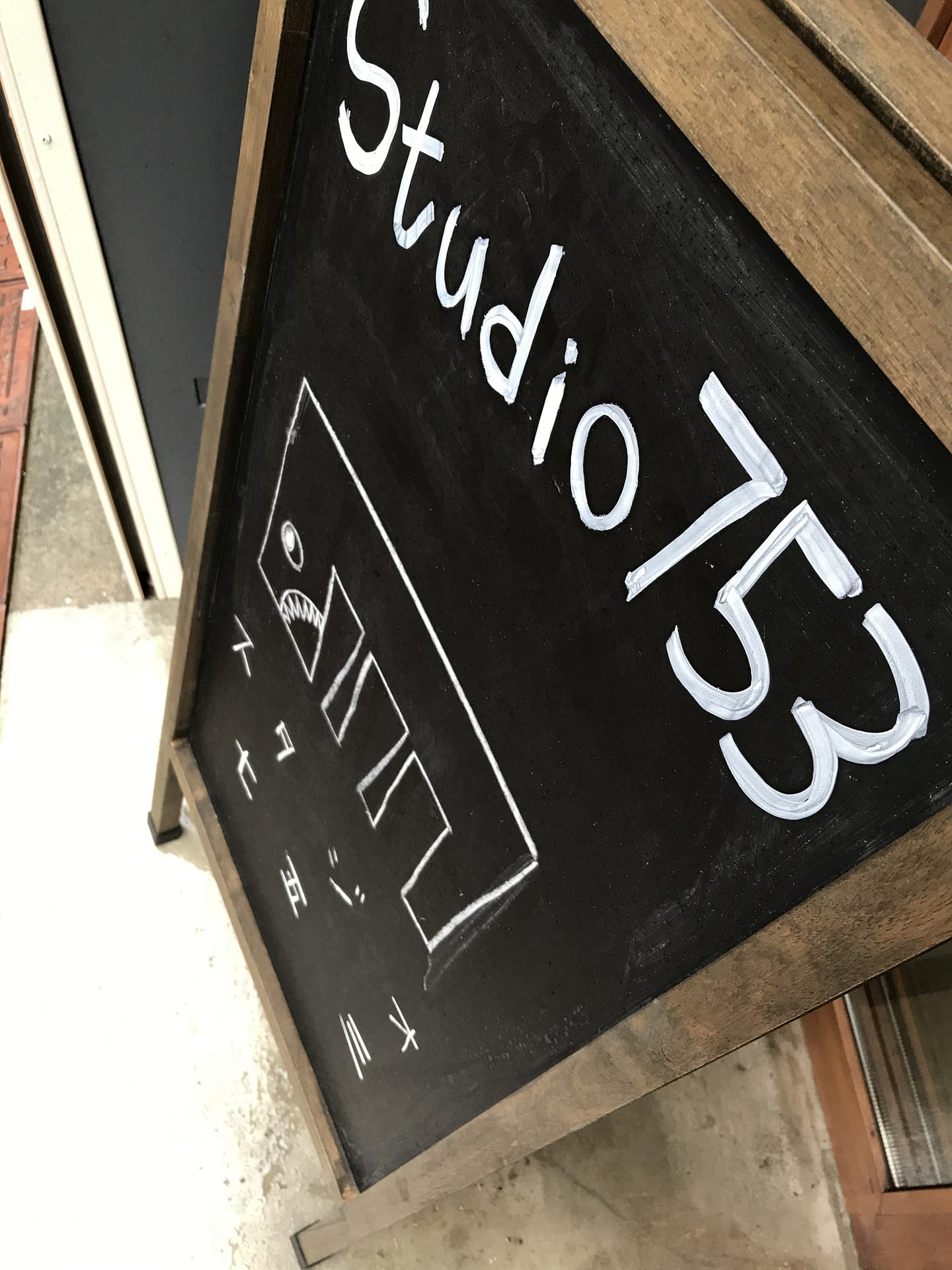 看板が最近の雨続きで、所々消えてしまっていたので、ついでにブラックボード用ポスカと、チョークを使いゆるく描き直しました。