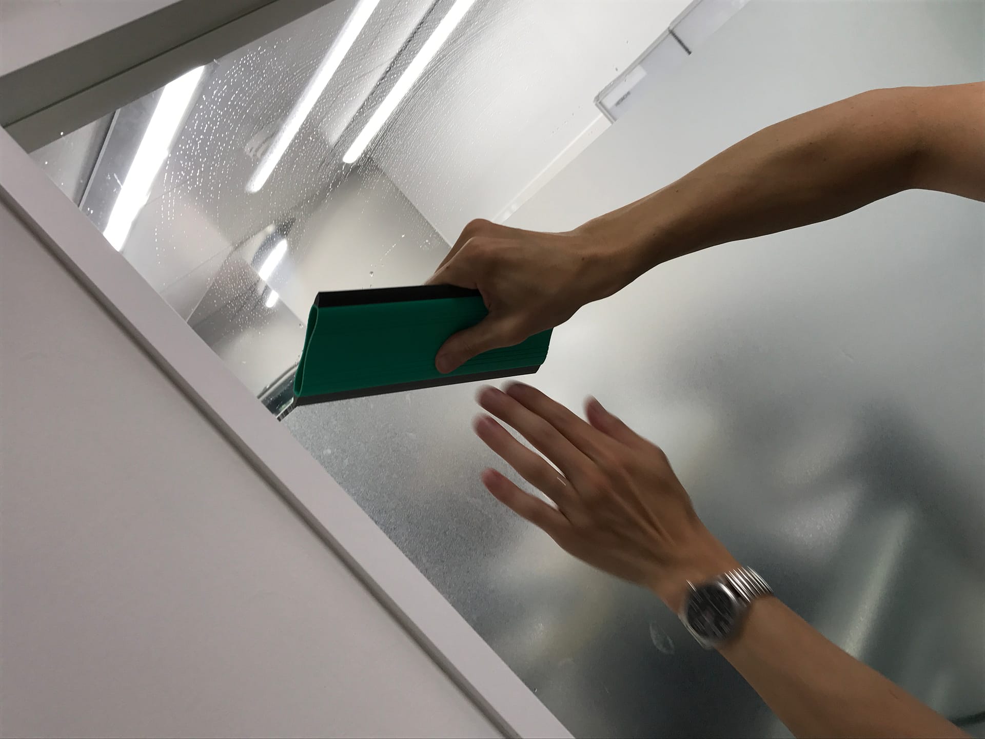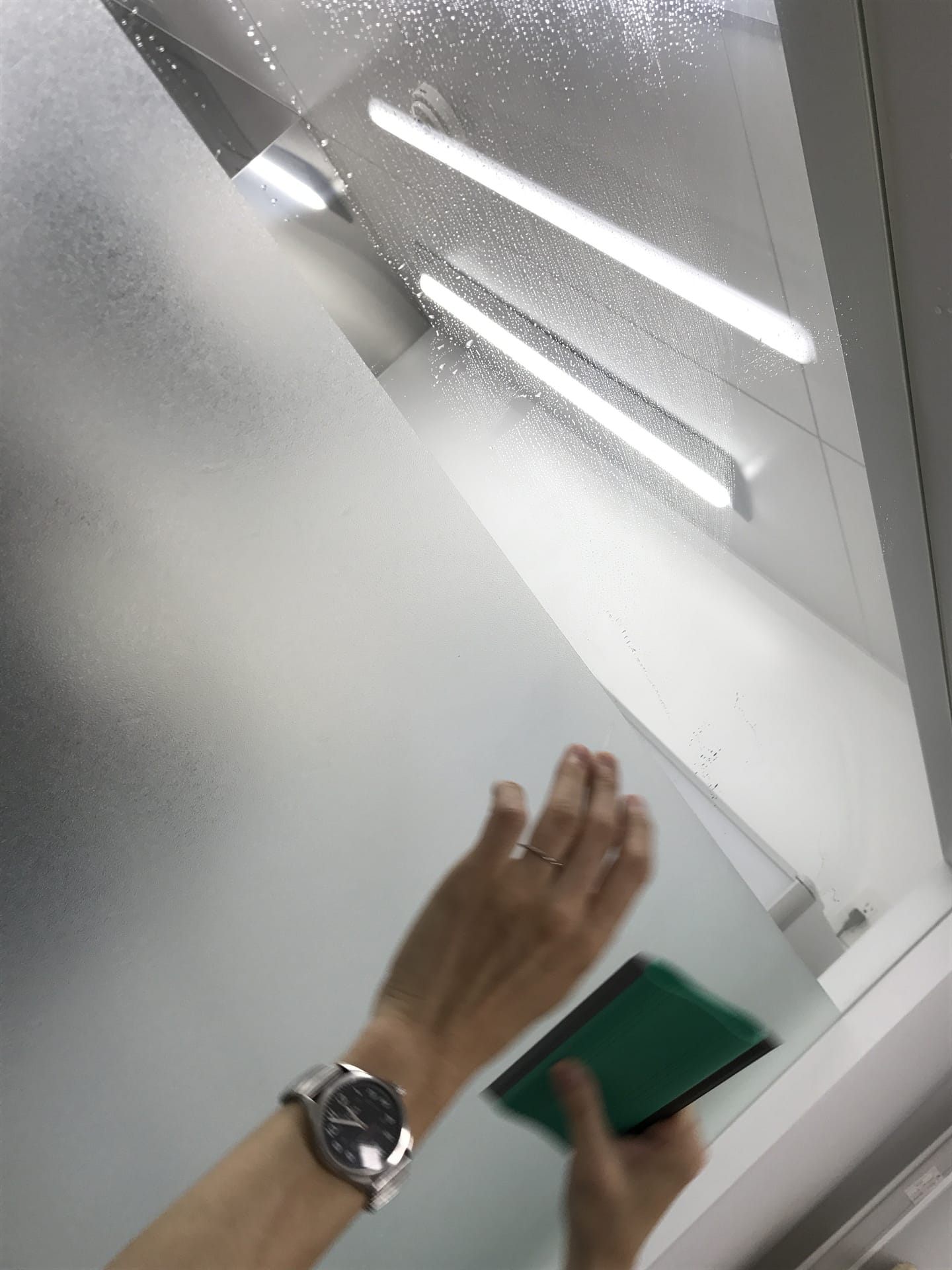 大きいので、カッティングや、シートとガラスの間に入った空気などを抜く作業が大変そうでした。