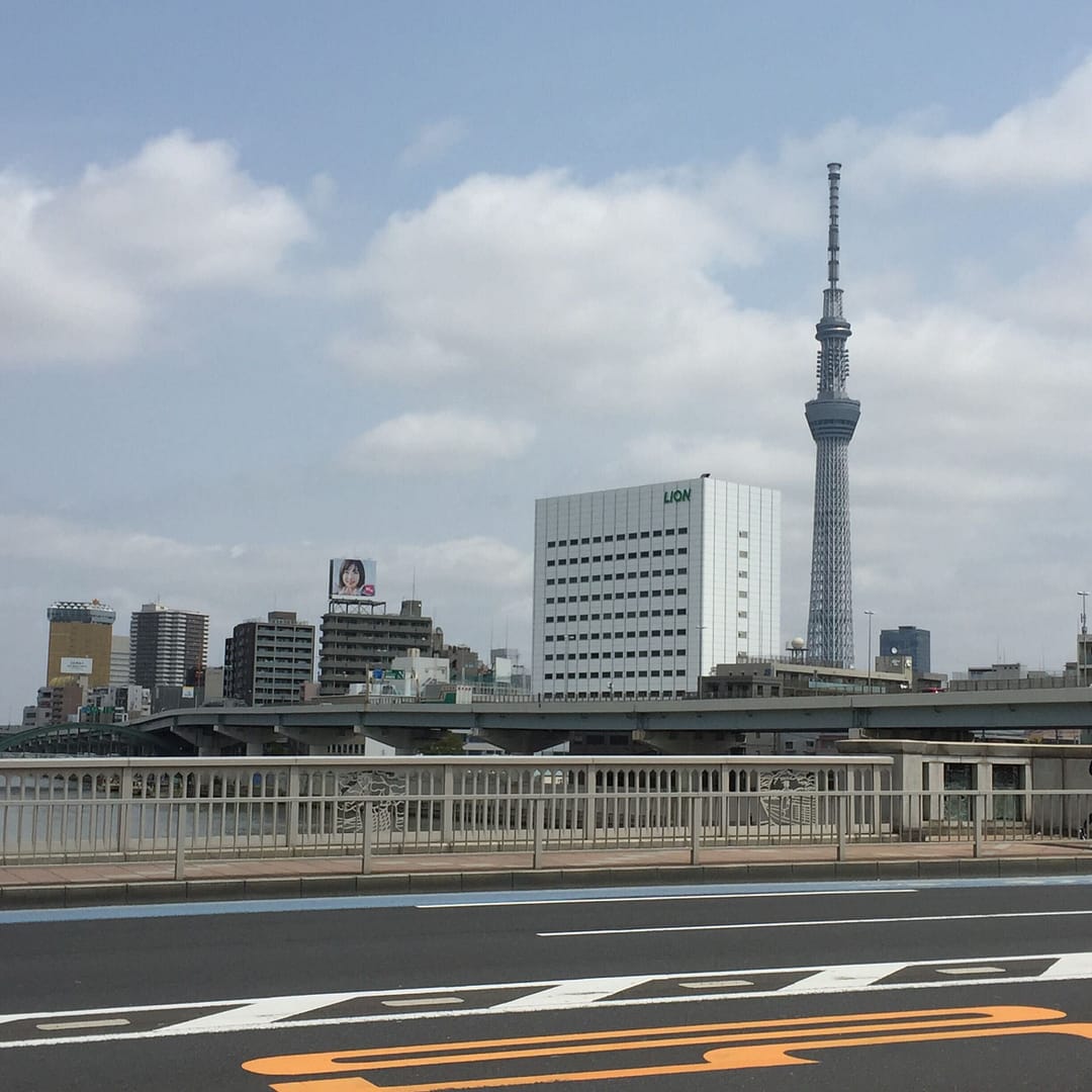蔵前橋から見た東京スカイツリー。曇りだったせいかもしれないが、なんとなく寂しそう…