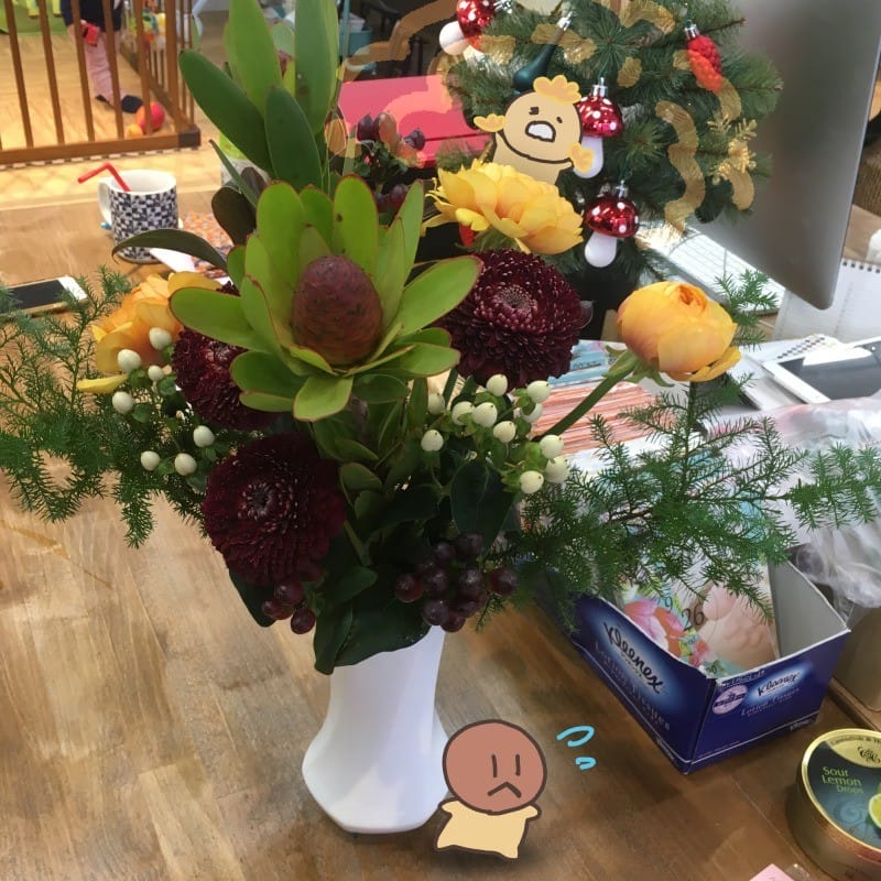 綺麗なフラワーアレンジメントがありますよ!冬でも華やかなお花は元気が出ます。
