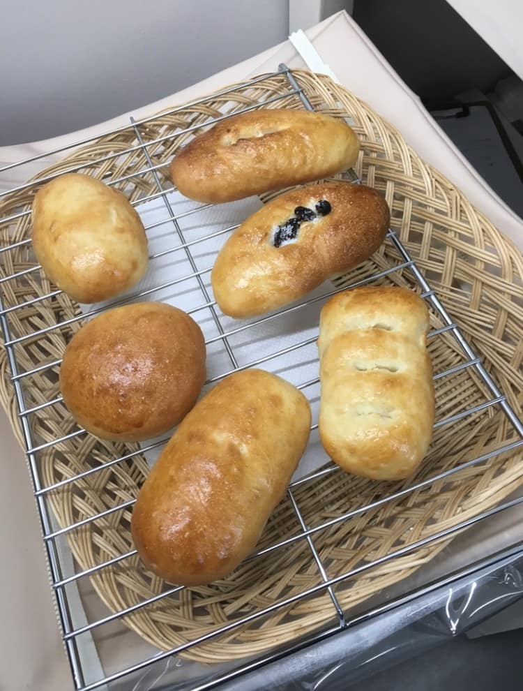 ぶどうパンです。成形を変えたり試行錯誤して新メニューに励んでおります。商品化楽しみですね。