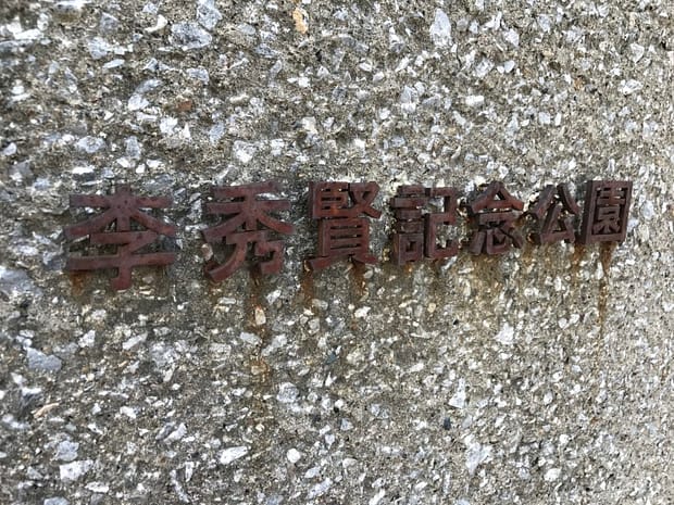 七五三通りにある赤門会日本語の入り口にはひっそりと李 秀賢を称えた記念公園があります。