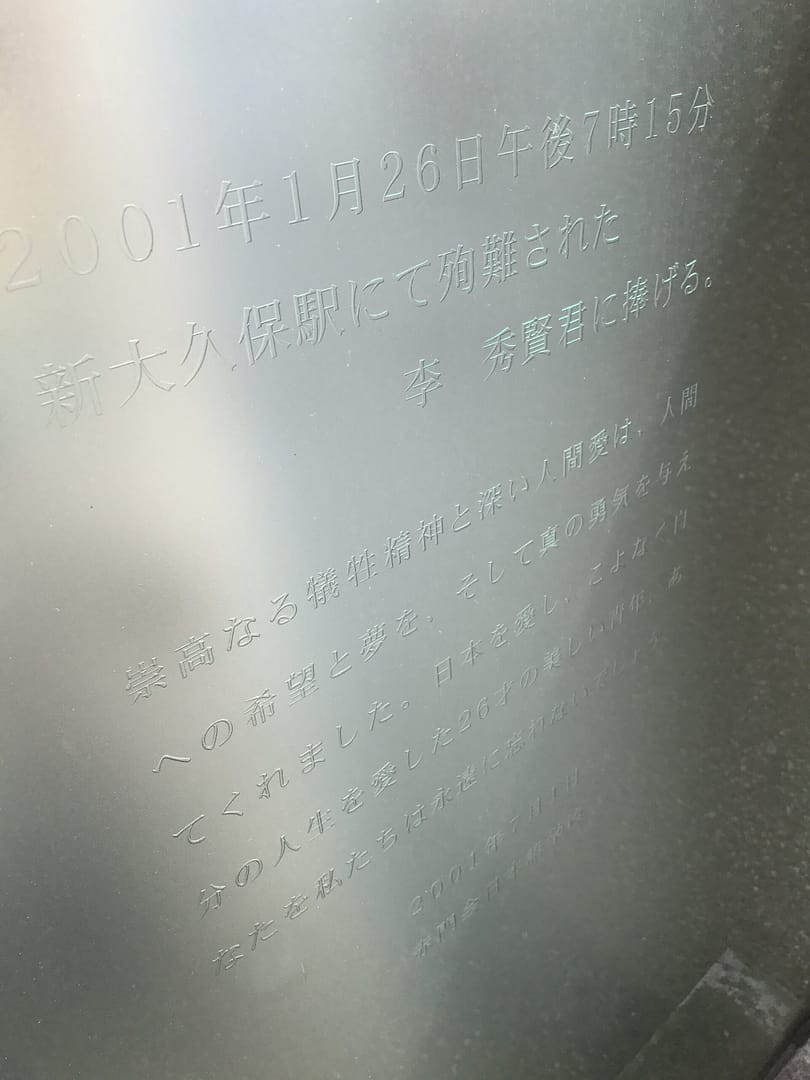皆さんは2001年1月26日に新大久保駅で殉難された李 秀賢 (イ・スヒョン)さんをご存知でしょうか?