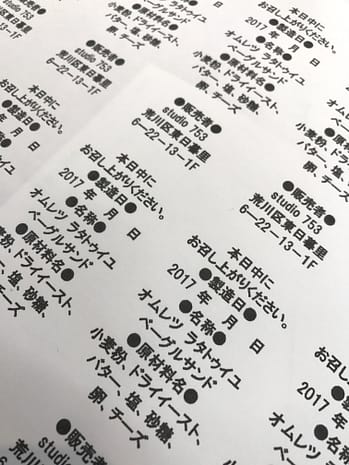 庶務班の事務は、ベーグルサンドなどの包装で使うアレルギー表示などのシールを制作していました。