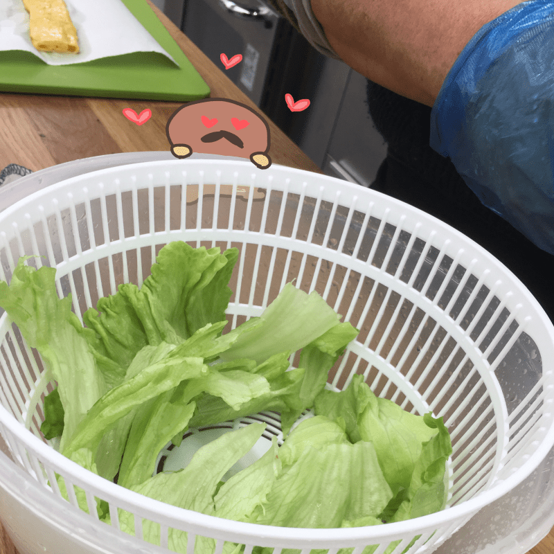 レタスを挟んでいるようですね、こひげさんは葉のものが大好き。つまみ食いはダメだよ~。