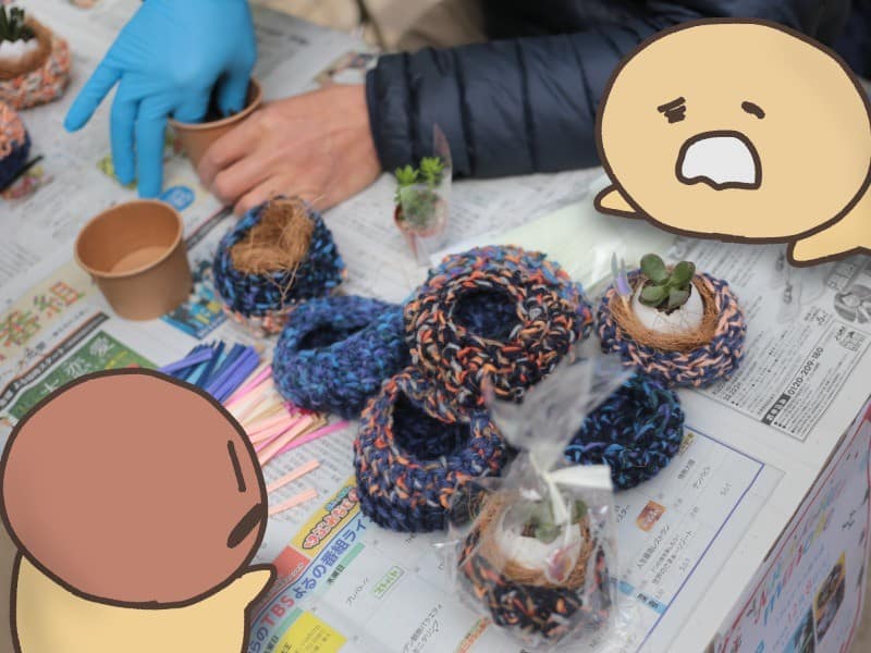 それじゃ、お家に連れて行ける多肉植物の飾りはいかがですか?ふたりともワークショップブースに行ってみましょう!