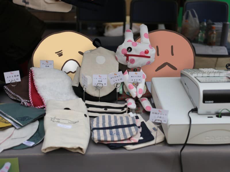 クラフト作品もたくさんありますね。特にうさぎのぬいぐるみはすぐに売り切れてしまう人気振り!他にもあまり見られない色やデザインのベビーグッスが好評でした。