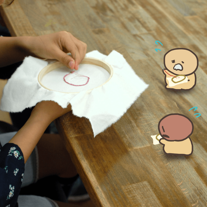 さあ、次はそのイラストを転写して、縫っていきましょう。ひげーずにはちょっと難しいかも・・・出来るところまで挑戦してみてね!
