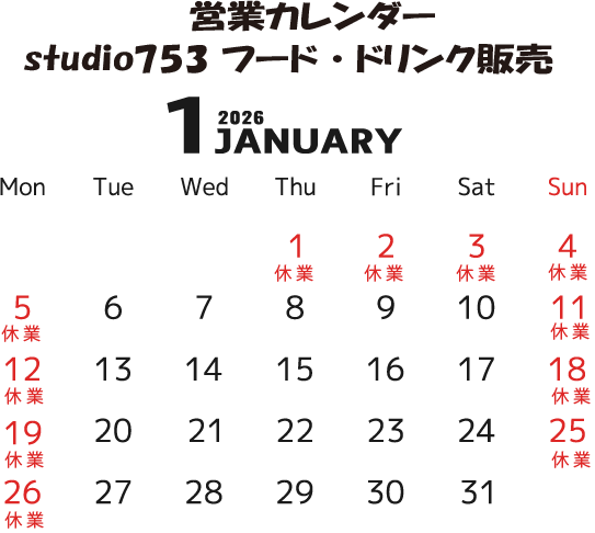 12/22(月)〜1/5(月)までお休みを頂き、新年は1/6(火)から営業させて頂きます。
